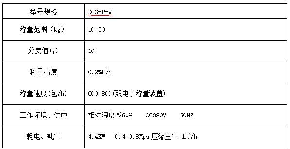 DCS-P-W型煤定量包裝機(jī)技術(shù)參數(shù):